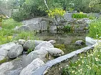 Caché derrière la Maison de la culture, le parc de 3,5 hehtares est construit sur une colline rocheuse. Un petit ruisseau traverse le parc et se jette dans un petit étang près de la porte côté Sturenkatu. Les deux autres entrées du parc sont situées au nord sur Vesilinnankatu et au sud en face de la porte principale du parc d'attractions Linnanmäki[2].