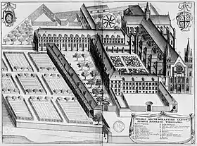 Jardins de l’ancienne abbaye de Saint-Remi sur le plan Héteau 1844.