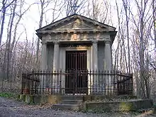 Dans le parc, il y a deux obélisques, dont l'un avec le nom KYSELAK gravé dessus. Joseph Kyselak a fait de nombreuses longues randonnées à travers les bois de Vienne pendant son temps libre pendant la période Biedermeier. Equipé d'un pot de peinture à l'huile noire, il a laissé ses célèbres lettres «KYSELAK» sur de nombreuses ruines, dalles de roche et piliers de ponts dans toute l'Autriche. Le nom Kyselak peut encore être trouvé aujourd'hui sur divers murs et places, bien que souvent sous une forme mutilée. La plupart des tags portant le nom Kyselak sont des faux modernes.