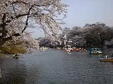 En avril, les nombreux cerisiers du parc en font un endroit privilégié lors de la fête de printemps : O-hanami.