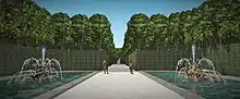 Parc de Sceaux, plaine des quatre statues avec les parterres de Le Nôtre restitués. Vue vers Châtenay-Malabry. | |