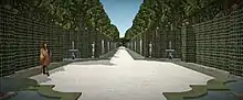 Les cônes d’ifs bordant les pelouses ont été conservés[12].