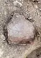 - Les fosses communes sans structure, à côté desquelles ont été observés des restes de piquets en fer indiquant l’utilisation de structure en bois pour l’enterrement du défunt.