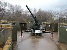 Pendant la Seconde Guerre mondiale, le Transporter Yard a servi de point d'embarquement de la Royal Air Force, et une partie des terres plus élevées a été le site de quatre canons anti-aériens Ack Ack. La batterie du 52 Heavy Anti-Aircraft Regiment, Royal Artillery, était stationnée à Mudchute jusqu'au . Ensuite, le 119 Heavy Anti-Aircraft Regiment a occupé le site jusqu'en 1945. Les canons ont été tirés par télécommande en utilisant le radar pour suivre les avions ennemis. Le Blitz a commencé le , et le , le Guardroom, la cantine et les magasins ont été détruits par les mines terrestres, mais il n'y a pas eu de victimes. Pendant le Blitz, 430 personnes ont été tuées sur l'île aux Chiens [9].