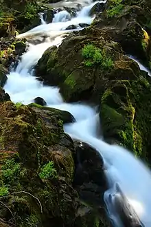 Déformées par la poussée des plaques, les roches des montagnes sont alors mises à nu et sont érodées par les précipitations et les glaciers au fil des millénaires ce qui donne naissance à des vallées encaissées[24],[25]. La zone reste même un moment couverte par une calotte glaciaire lors d'une glaciation qui ne se termine qu'il y a environ 12 500 ans[26]. En libérant la région, la calotte laisse de larges vallées comme le Puget Sound qui est alors entièrement submergée par les eaux du Pacifique. Plus au sud, grâce à une altitude plus élevée, d'autres vallées subsistent comme la vallée de la Willamette[22].