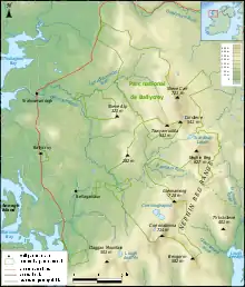 Le parc national est dominé par le massif du Nephin Beg[1]. Les deux plus grands sommets sont Slieve Carr (721 m[3]) et le Nephin Beg (627 m[3]).
