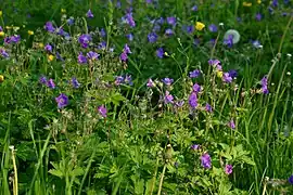 Malgré sa taille, le parc comporte des environnements naturels variés. Près de l'entrée du parc, au sud, se trouvent les prairies, qui sont la principale raison d'existence du parc. Il s'agit d'anciens champs, et de nos jours encore, ils sont entretenus par fauchage au mois d'août[3]. Au printemps et début d'été, ces prairies sont entièrement couvertes de fleurs, dont en particulier l'Ancolie commune (Aquilegia vulgaris), la primevère officinale (Primula veris), l'œillet glauque (Dianthus deltoides), l'orchis mâle (Orchis mascula) ou tacheté (Dactylorhiza maculata subsp. maculata) ainsi que, dans les parties plus humides, la trolle d'Europe (Trollius europaeus) ou la succise des prés (Succisa pratensis)[1]. Ces prairies comportent aussi un certain nombre d'arbres, eux aussi entretenus par élagage, offrant ainsi une image du paysage agricole du XIXe siècle[1].