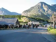 Sous la direction de son président Louis W. Hill, le Great Northern Railway construisit de nombreux hôtels et chalets à travers le parc dans les années 1910 en vue de promouvoir le tourisme dans celui-ci. Ces bâtiments, gérés par la succursale Glacier Park Company de la compagnie de chemin de fer, furent dessinés selon l'architecture des chalets suisses. Le but était de donner au parc une image de « Suisse américaine ». Les visiteurs transportaient leurs affaires à dos de cheval pour atteindre les chalets plus éloignés dans le parc comme dans la région de Many Glacier[52].