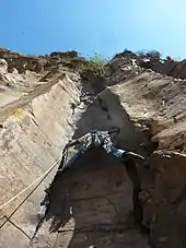Son nom provient d'une fracture étroite dans les falaises, qui était autrefois l'affluent d'un lac préhistorique qui nourrissait les hommes dans la vallée du Grand Rift (le nom fut choisi par les explorateurs Fisher et Thomson en 1883).