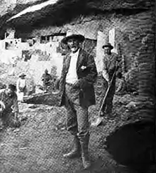 Les Wetherills également accueillirent Gustaf Nordenskiöld, le fils de l'explorateur polaire Adolf Erik Nordenskiöld, en 1891[87] [88]. Nordenskiöld était un minéralogiste qualifié qui introduisit des méthodes scientifiques dans la collecte d'artefacts ;il enregistra des emplacements, photographia de manière approfondie, fit des schémas des sites et corréla ce qui il avait observé avec la littérature archéologique existante, ainsi que l'expertise locale des Wetherills [89]. Il enleva beaucoup d'artefacts, envoyés en Suède, et qui terminèrent au Musée national de Finlande. Nordenskiöld publia, en 1893, The Cliff Dwellers of the Mesa Verde[55]. Quand Nordenskiöld expédia la collection d'artefacts de Mesa Verde qu'il avait rassemblée, l'événement déclencha des inquiétudes sur la nécessité de protéger la terre de Mesa Verde et ses ressources[55].