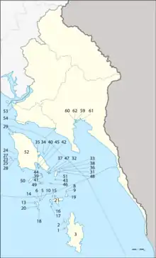 Il y a aussi de très nombreux îlots : Ko Ma Pring (เกาะ มะปริง), Ko Yuak (เกาะ หยวก), Ko Salak Khok (เกาะ สลัก คอก), Ko Ngam (เกาะ งาม), Ko Mai Si Yai (เกาะ ไม้ ซี้ ใหญ่), Ko Mai Si Lek (เกาะ ไม้ ซี้ เล็ก), Ko Bai Tang (เกาะ ใบ ตัง)...