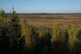 Le parc national de Torronsuo a des sentiers de caillebotis d'un et dix kilomètres de long. En plus de ces longs sentiers en bois, il y a des pistes de ski de randonnée aménagées dans le marais en hiver.