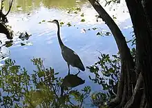 Le marécage d'eau douce constitue certainement l'écosystème le plus commun du parc national des Everglades. Ses canaux de drainage se caractérisent par des zones de faible profondeur qui s'écoulent très lentement (vitesse inférieure à trente mètres par jour)[38]. Parmi les exemples les plus significatifs, on peut citer les marais de Shark River et de Taylor. Cladium mariscus subsp. jamaicense, une sous-espèce des marisques, pouvant pousser jusqu'à atteindre une hauteur de 1,8 mètre, et les autres plantes marécageuses à larges feuilles, sont si courantes dans cette région qu'elles ont valu aux Everglades son surnom de River of Grass (littéralement, « rivière d’herbe »). Les marécages des Everglades constituent un habitat idéal pour la reproduction et attirent ainsi une grande variété d'échassiers tels que les hérons, les aigrettes, les spatules rosées, les ibis, les pélicans ainsi que des courlans bruns et des milans des marais qui se nourrissent d’escargots de la famille des ampullariidae. La forte densité de poissons, d'amphibiens et de jeunes oiseaux attire de nombreux prédateurs, comme les alligators, les tortues d'eau douce, les mocassins d'eau ou les crotales. À ce titre, le parc national des Everglades est le seul endroit au monde où les crocodiles coexistent de manière naturelle avec les alligators[39].