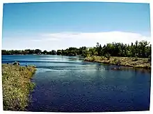 En 1959, un barrage a été construit sur la rivière aux Rats par l'Administration du rétablissement agricole des Prairies dans le but de réguler le débit de la rivière et d’assurer l’approvisionnement en eau des collectivités. Ce barrage est un ouvrage en remblai de 450 mètres de long, d'une hauteur maximale de 13 mètres et d'une épaisseur de 6 mètres au sommet[11].