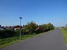 Le parcours se poursuit de Lichtenrade à Lichterfelde puis Teltow, parfois recouvert de végétation. Alors que la portion berlinoise du parcours jusqu'à la limite de la ville donne à voir des paysages très urbains, passant parfois dans des zones de lotissements, du côté du Land de Brandebourg, le parcours traverse des zones souvent vierges de toute construction. L'initiative citoyenne pour le plateau de Teltow vise à préserver cette « périphérie verte »[12]. Au nord, le parcours passe à côté de l'ancien village de Osdorf, dont les habitants ont été déplacés en 1968 par les dirigeants de la RDA, en raison de leur grande proximité avec la frontière. À « Japaneck », un tronçon de 1,5 kilomètre est bordé de cerisiers du Japon, qui ont été plantés là après la chute du mur. Chaque année, au printemps, s'y déroule un festival des fleurs de cerisiers. À cet endroit, le parcours du mur passe sur quelques mètres sur la zone berlinoise, où un passage avait été aménagé sous la ligne de chemin de fer Berlin-Halle.