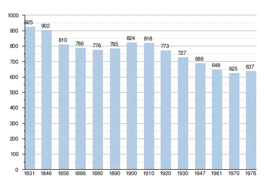 - Sources : INS, Rem. : 1831 jusqu'en 1970 = recensements, 1976 = nombre d'habitants au 31 décembre[5].