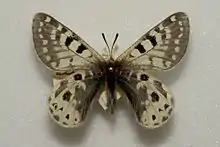 Parnassius acco se nomme Varnished Apollo en anglais.