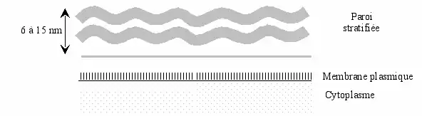 Elle est plus fine (entre 6 et 15 nm), composée de plusieurs couches dont une lipidique (ce qui explique que l'alcool, liposoluble, passe à travers ce type de paroi).