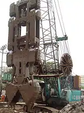 La paroi est ensuite réalisée par panneaux unitaires creusés par un trépan-benne ou une hydro haveuse montés sur une grue à câble ou une pelle spécialisée[1],[2].