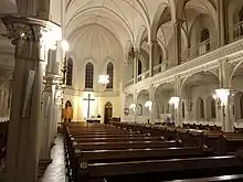 Le débute la construction d'un nouvel édifice en style gothique, conçu par l'architecte Adolf Loewe. La construction dure 14 ans, et le temple est inauguré officiellement le . La tour est inspirée de la cathédrale Notre-Dame de Fribourg, en Allemagne. La chaire en chêne est réalisée et conçue par Konstanty Wojciechowski (pl). En 1881, la paroisse fondée dans le palais Działyński comprend un hôpital, une école primaire, une maison pour orphelins et une maison de retraite.