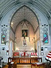 L'église actuelle a été érigée entre 1884 et 1887. Elle est la troisième église à avoir été érigée sur ces lieux. Les plans sont des architectes Henri-Maurice Perrault et Albert Mesnard. D'architecture éclectique, elle présente un mélange de style roman, byzantin et gothique.