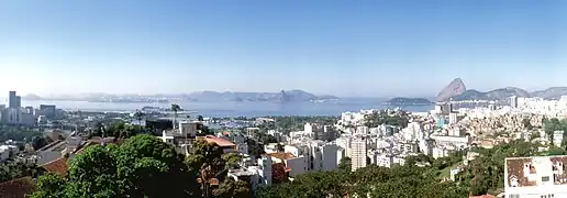 Le lieu a aussi une vue panoramique sur la Baie de Guanabara, d'un côté, et sur le centro de l'autre côté. Avec la ville de Rio de Janeiro aux ses pieds, le belvédère est un bon lieu pour mieux comprendre la géographie de la ville[2].