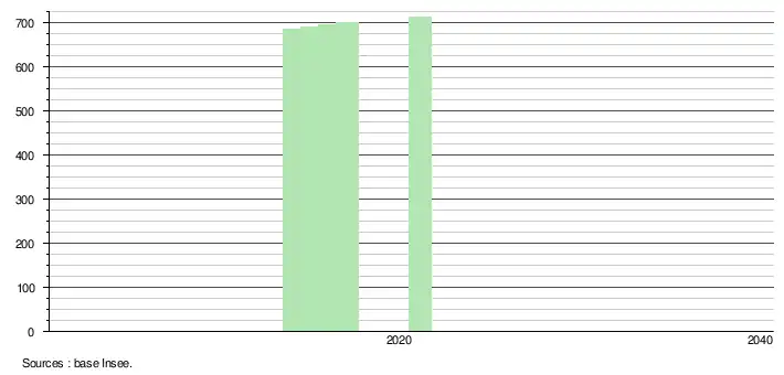 En 2021, la commune comptait 713 habitants[Note 3], en augmentation de 3,33 % par rapport à 2015 (Creuse : −3,87 %, France hors Mayotte : +1,84 %).