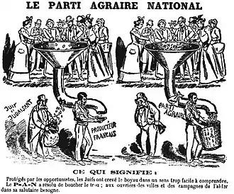 Le Parti agraire national (P-A-N) est fondé en mai 1897 par le vicomte d'Hugues[2]. Membre de la Société des agriculteurs de France (SAF), D'Hugues considère que l'action de celle-ci est entravée par son ouverture aux industriels et aux financiers, dont certains sont juifs ou protestants[3]. Déjà président-fondateur du Syndicat agricole des Alpes, le vicomte d'Hugues utilise la loi Waldeck-Rousseau de 1884 pour créer le P-A-N sous la forme juridique d'un syndicat professionnel[4], ce qui doit permettre au parti de s'affranchir de l'approbation gouvernementale nécessaire à la constitution des autres types de société[3].