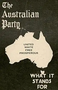Un autre « parti australien » a été créé en 1966. Il a publié une déclaration de politique générale: «dans les affaires intérieures, nous voulons que le mot « Commonwealth » ait un sens. La terre sera disponible pour tous ceux qui en ont besoin à des prix raisonnables. Tirer profit de la terre sera une infraction pénale. En politique étrangère, nous préconisons la reconnaissance d'une Asie nouvelle et d'un monde qui est différent de celui d'il y a dix ans. Des mesures immédiates pour améliorer considérablement le système de transport nécessitera un plan de grands axes routiers, une modernisation importante des chemins de fer . »[1]