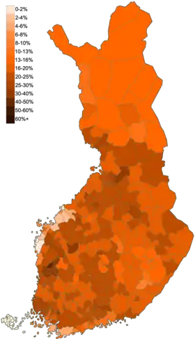 Lors des élections municipales de 2012, le parti des Vrais Finlandais affiche une progression de sept points par rapport à 2008 avec 12,3 % des suffrages exprimés[35].