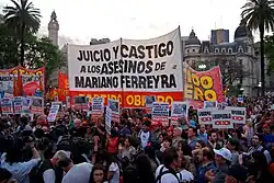 Le , un militant du Parti Ouvrier de 23 ans, Mariano Ferreyra (es), a été assassiné par des syndicalistes de l'Union Ferroviaire alors qu'il soutenait une manifestation d'employés qui avaient été licenciés[11]. Ce meurtre a provoqué des mobilisations dans les diverses villes du pays, avec une participation proche de cent mille personnes. Dix membres de l'Union Ferroviaire ont été incarcérés, entre autres son secrétaire général José Ángel Pedraza (es), accusé de diriger une clique illicite pour perpétrer des crimes.