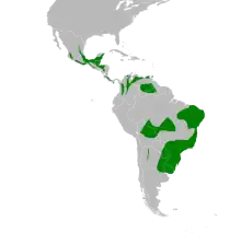 La Paruline à couronne dorée a une aire de distribution vaste et morcelée en Amérique centrale et en Amérique du Sud.