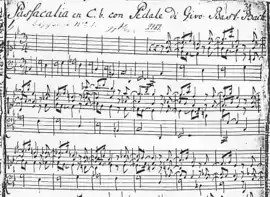 La date de composition précise de l’œuvre n'est pas connue, mais les sources disponibles s'accordent sur une période comprise entre 1706 et 1713. Il est possible que la pièce ait été composée à Arnstadt peu après le retour de Bach de Lübeck [1], ville où Bach aurait étudié les œuvres en ostinato de Buxtehude.