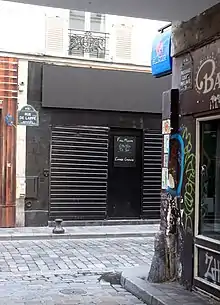 Pierre protègeant l'immeuble à l'intersection de la rue de Lappe et du passage Louis-Philippe.
