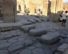 Des passages surélevés pour piétons existaient déjà il y a plus de 2 000 ans, comme on peut le constater à Pompéi. Ils permettaient aux piétons de traverser les rues à chaque carrefour, en passant de trottoir à trottoir, ceux-ci étant assez élevés (30 cm ou plus), pour empêcher les chars de quitter la chaussée.