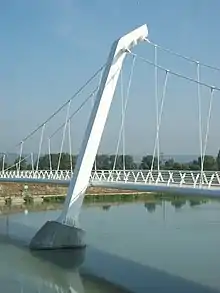 La passerelle a été construite à proximité immédiate du pont routier en treillis dit « Pont de Décines » datant de 1896[4]. Il est situé à proximité du Grand Large et du Grand parc de Miribel-Jonage.
