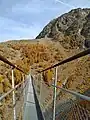 Large de 65 cm seulement, la passerelle domine de 85 m le fond de la vallée. Des caillebotis galvanisés supportent les marcheurs. Les câbles de suspension pèsent 8 tonnes[3]. Le pont totalise un poids de 58 tonnes ; un système d’amortissement en réduit les oscillations[1].