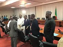 Le , le juge d'instruction Angelo Houssou, ordonne un « non-lieu à poursuivre » dans les affaires de tentative d'empoisonnement et de coup d'État contre le président Thomas Boni Yayi[37], considérant que sans passage à l'acte, il n'y avait pas d'infraction de tentative d'assassinat. Le juge d'instruction a été intercepté le soir même de la publication de son ordonnance de non-lieu à Sèmè-Kraké, alors qu'il tentait de se rendre à Lagos au Nigeria, transportant plusieurs valises contenant entre autres de l'argent liquide, et un visa pour les États-Unis[38]. Il a été ramené à son domicile de Cotonou, qui reste surveillé par une brigade anti-criminalité[39].