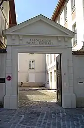 La propriété des Dames de Saint-Raphaël, située 2 place du Carrousel, se trouve déjà sur les plans de 1751[23]. Le domaine a été agrandi de deux autres propriétés mitoyennes entre 1751 et 1788. Les façades et le portail datent sans doute de la fin XVIIIe siècle. Les bâtiments sont groupés autour d’une cour carrée. En 1892, la demeure abrite quelques mois l’écrivain Léon Bloy qui y achève la rédaction de son livre Le Salut par les Juifs[24]. Les dames de Saint Raphaël achètent cette propriété en 1895. Elles font construire le bâtiment du corps d'entrée et l'aile nord des bâtiments sur la cour de la maison de maître. Parallèlement elles font construire, en retrait de l'avenue du Bois-de-Verrières, un vaste bâtiment destiné à accueillir des mères en difficulté.