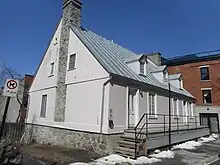 Construite en pierre, elle se caractérise surtout par son toit à pignon à pente recourbée, de manière que la neige ne tombe pas directement sur le sol, mais soit plutôt ralentie et projetée un peu plus loin. À Montréal, si elle est attenante à d'autres maisons, elle possède des murs coupe-feu, surélevés par rapport à la toiture de manière à empêcher la propagation du feu.