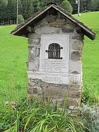 - Inscription littérale "Monseigur lillustrissime & reverendissime eveque & prince de geneve âccorde 40jours dindulgences â tous ceux & celles qui diront un pater et un ave maria devant cette oratoîre A.F.D 1760"