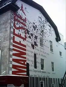 - La murale Manifeste à Paul-Émile Borduas de Thomas Csano et Luc Saucier est produite l'organisme MU en 2010 afin de rendre un hommage à la contribution de ce grand artiste à la vie artistique et sociale du Québec dans le cadre du cinquantième anniversaire de son décès. L'œuvre est réalisée à la place Paul-Émile Borduas (intersection rue Saint-Denis et rue Émery à Montréal)[44].