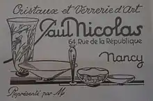 Paul Nicolas est issu de l'École de Nancy. Élève d'Émile Gallé, dont il rejoint l'entreprise en 1893, il crée en 1919 sa propre entreprise avec le soutien des Cristalleries de Saint-Louis.