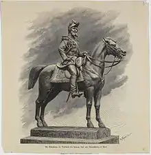 - Genève, la statue équestre du monument Brunswick, gravure[14]