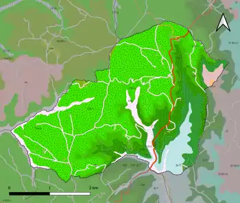 La superficie cadastrale de la commune publiée par l'Insee, qui sert de référence dans toutes les statistiques, est de 11,43 km2[8],[13],[Note 2]. La superficie géographique, issue de la BD Topo, composante du Référentiel à grande échelle produit par l'IGN, est quant à elle de 11,68 km2[5].