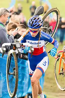Après avoir réalisé son premier podium en coupe du monde de cyclo-cross[48], elle devient pour la deuxième année consécutive championne de France de cyclo-cross[49]. À une semaine des mondiaux, elle décroche un nouveau podium lors de la manche finale de la Coupe du monde à Hoogerheide[50]. Le , elle décroche le titre mondial en cyclo-cross. Elle s'impose au sprint devant la Belge Sanne Cant. Sa coéquipière en équipe de marque Marianne Vos, septuple championne du monde de la spécialité, complète le podium[51].