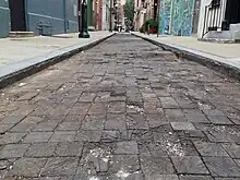 Wooden Alley (en) est une allée pavée en bois historique reliant North Astor Street et State Street, dans le quartier Near North Side de Chicago, en Illinois. Dans les années 1850, les rues en blocs de bois ont commencé à être utilisées à Chicago. La chaussée aurait été construite en blocs de bois de quatre pouces sur cinq, remplis de gravier et de sable et recouverts de goudron de houille. Tous matériaux combustibles, lors du Grand incendie de Chicago de 1871, les rues brûlaient littéralement[9]. Cette allée a été préservée et restaurée en 2011. Une autre allée de blocs de bois, bloc 2100, North Hudson a été pavée à l'automne 2018.