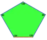 Les pentagones du pavage du Caire sont des figures symétriques avec un côté plus court que les autres (sqrt(3)-1); deux des angles sont droits et les trois autres obtus (120°).
