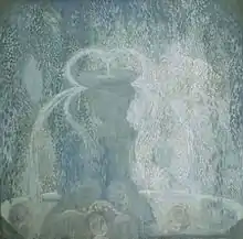 « La Fontaine bleue » (1905) de Kouznetsov incarne la notion même de peinture pour le groupe de la « Rose bleue ». Tout :le titre, le motif, les couleurs, la plus fine des lignes, la moindre touche de peinture constitue l'expression classique de la peinture symboliste. Sa toile ne rend pas l'image d'une fontaine, c'est l'expression de sa signification : un monde bleu, celui du subconscient, celui où apparaissent des fragments de visions, des images insaisissables sorties du sommeil[3].