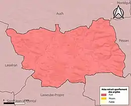 Le retrait-gonflement des sols argileux est susceptible d'engendrer des dommages importants aux bâtiments en cas d’alternance de périodes de sécheresse et de pluie. La totalité de la commune est en aléa moyen ou fort (94,5 % au niveau départemental et 48,5 % au niveau national). Sur les 1 087 bâtiments dénombrés sur la commune en 2019, 1 087 sont en aléa moyen ou fort, soit 100 %, à comparer aux 93 % au niveau départemental et 54 % au niveau national. Une cartographie de l'exposition du territoire national au retrait gonflement des sols argileux est disponible sur le site du BRGM[25],[Carte 3].